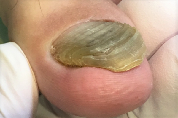 施術前と施術後の爪の状態を確認します。一回で痛みの改善を目指します。