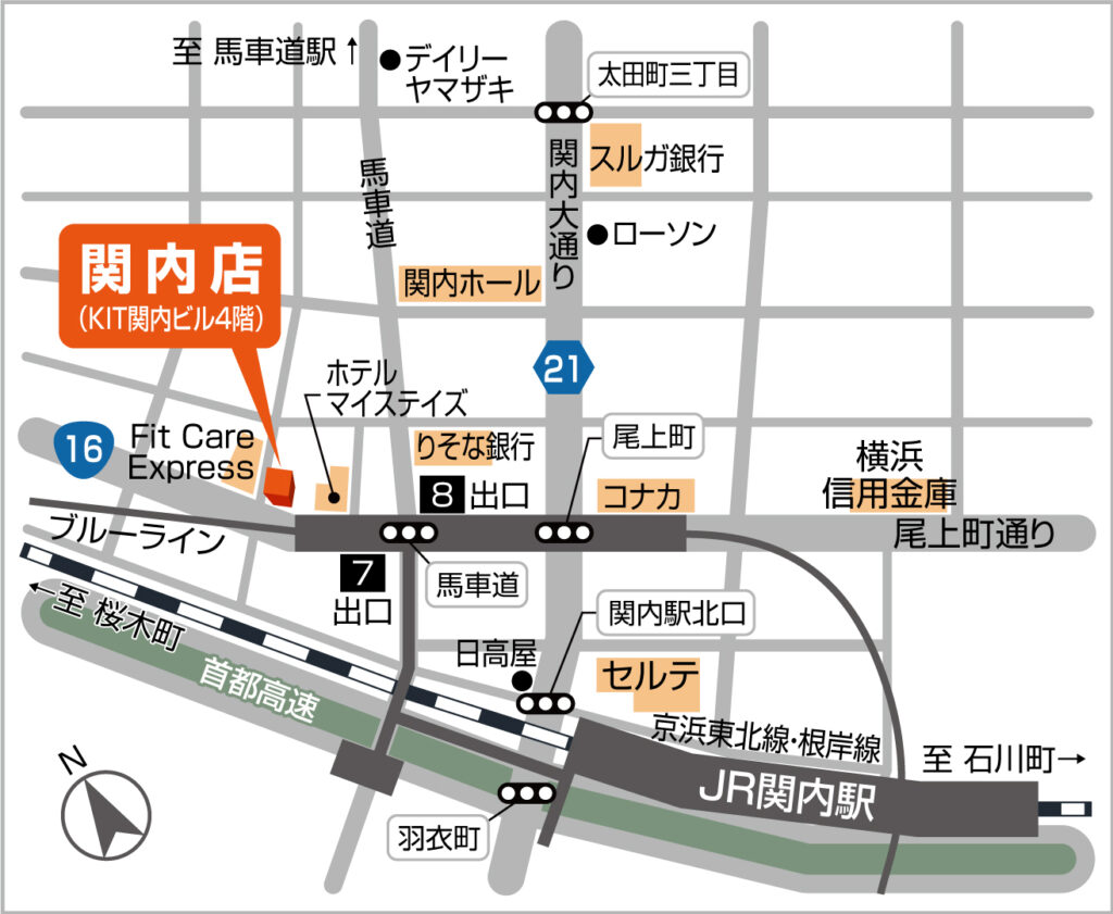 お客様に無理なく通っていただけるように、関内駅から徒歩1分以内にお店があります。お客様が来店する事に少しでもストレスを感じずに来てもらえるように「近くて便利」を追究しております。