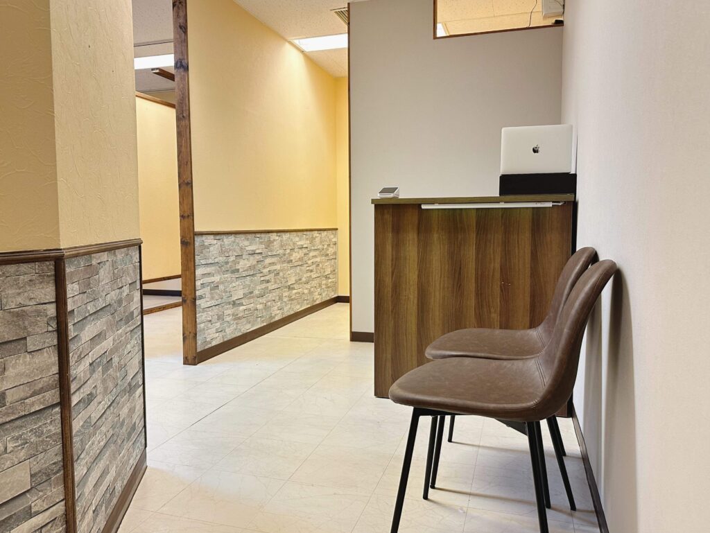 - お子さま連れでご来店いただいても大丈夫です。施術ベッドの横にスペースがありますので、一緒に座って待つことができます。また、生まれて間もないお子さまは抱っこしながら施術を受ける事もできますのでご安心ください。
