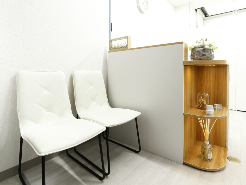 - お子さま連れでご来店いただいても大丈夫です。施術ベッドの横にスペースがありますので、一緒に座って待つことができます。また、生まれて間もないお子さまは抱っこしながら施術を受ける事もできますのでご安心ください。