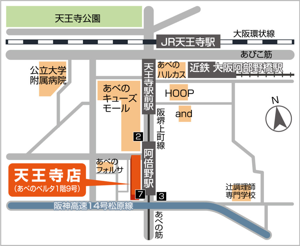 - 住 所〒545-0052大阪市阿倍野区阿倍野筋3丁目10-1あべのベルタ1階9号(あべのベルタ内)