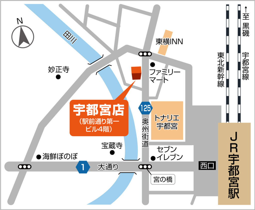 - 住 所〒321-0964栃木県宇都宮市駅前通り1丁目1-9駅前通り第一ビル4階